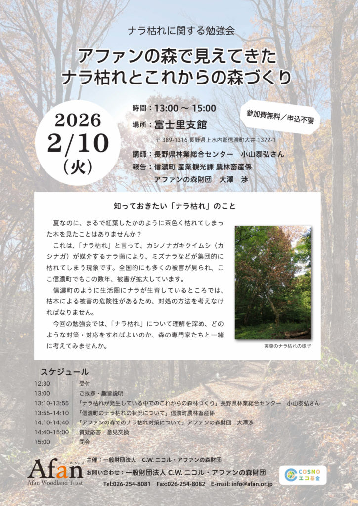 そこで、地域の皆さんとナラ枯れについて理解を深めるため、以下の日程で勉強会を開催します。